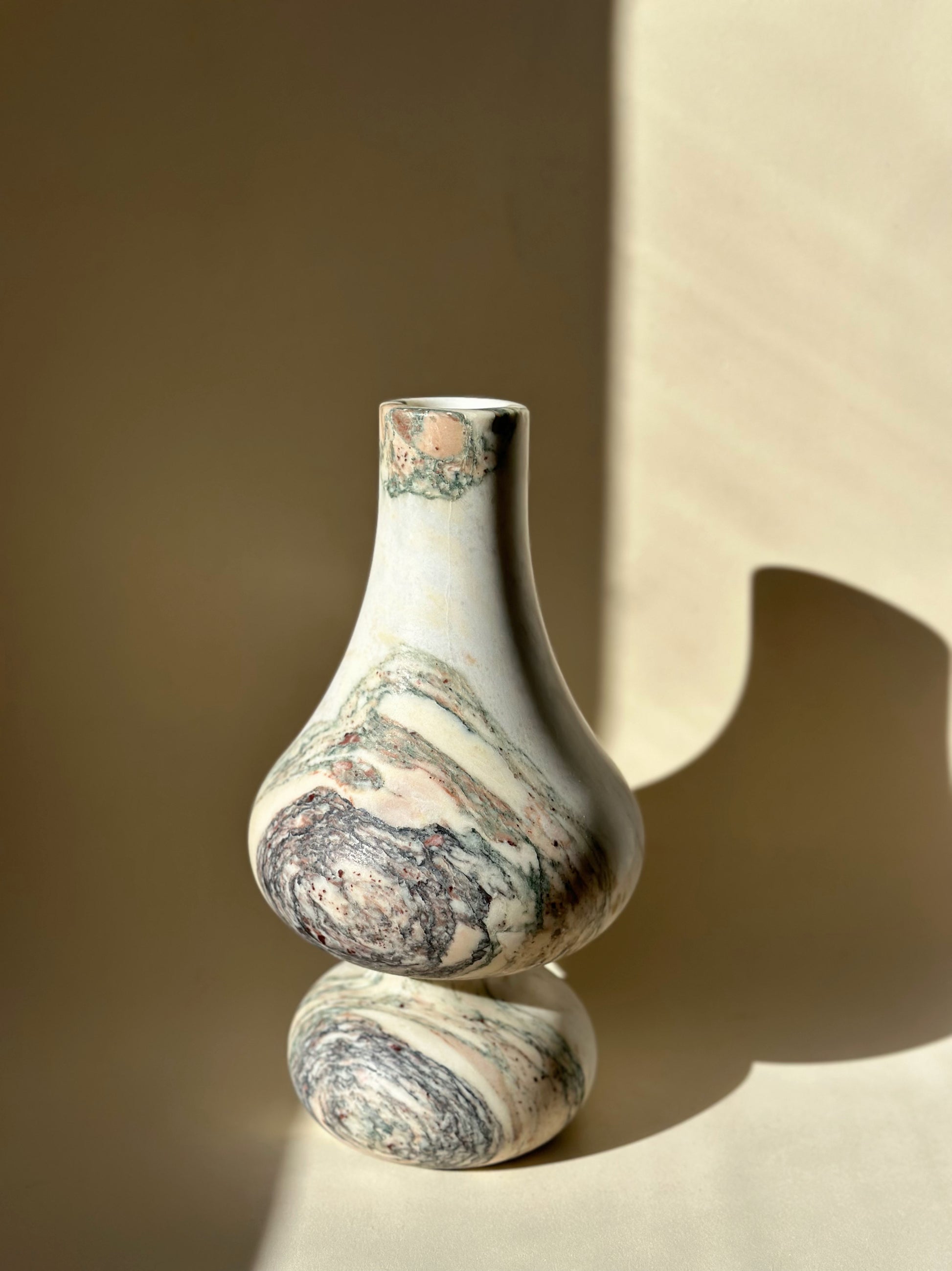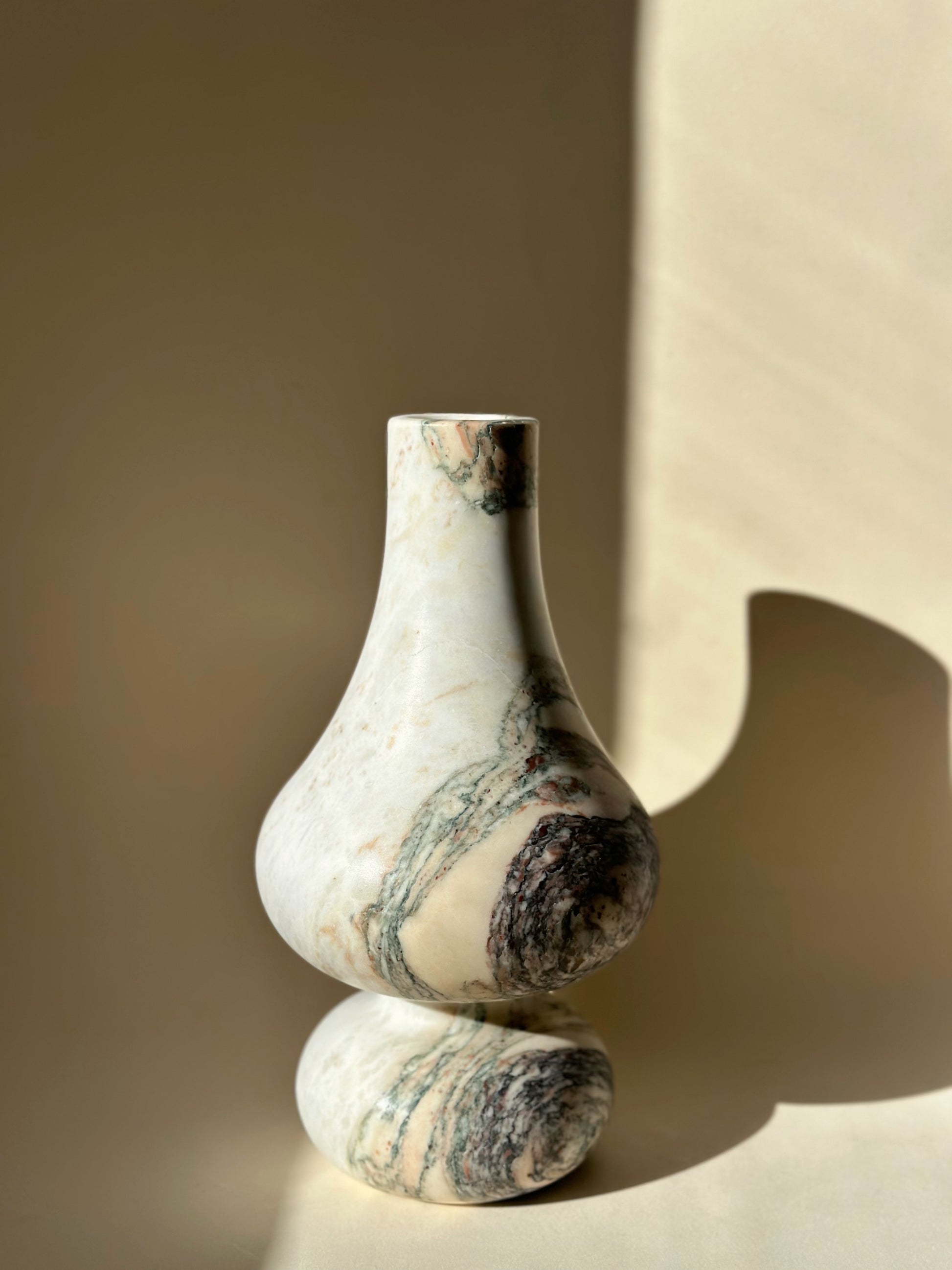 Each curve and contour is meticulously hand-carved by master artisans, ensuring a flawless, silken finish that honors the stone’s noble origins. The vase’s graceful silhouette and bold veining evoke the poise of royalty, making it a captivating centerpiece for refined interiors.